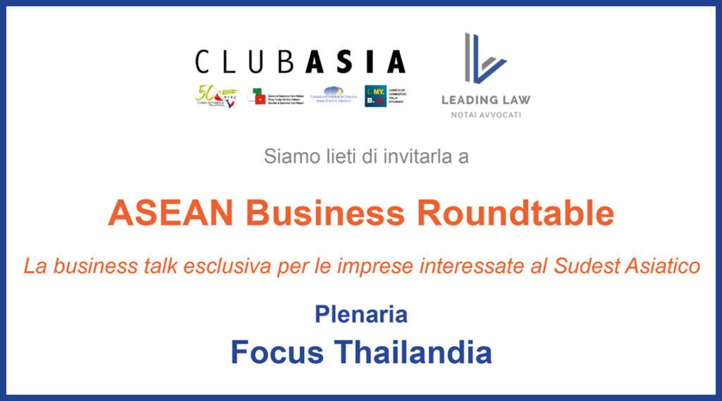 On May 25 Club Asia and Leading Law organised a new ASEAN Business Roundtable to discuss business opportunities in Thailand for Italian firms with H.E. Lorenzo Galanti, Ambassador of Italy in Thailand Download brochure