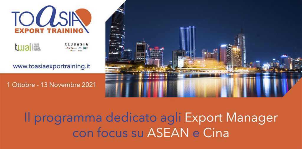 Lo scorso 1 ottobre è iniziata la seconda edizione del TOAsia Export Training, il programma dedicato agli Export Manager che vedono nei paesi del Sudest Asiatico e nella Cina l’opportunità per espandere le esportazioni italiane. Il corso ha un taglio pratico e approfondisce tutti gli argomenti che un Export Manager deve conoscere per mettere in…